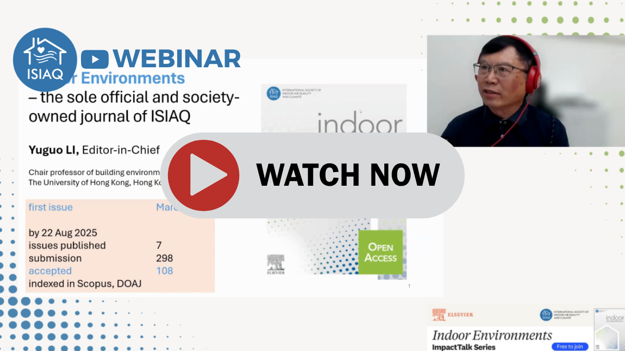 ISIAQ, in collaboration with Indoor Environments, hosts a webinar series that features popular and influential articles from Indoor Environments. The goal of this series is to share scholarly work from Indoor Environments with a multi-disciplinary audience of scholars. Picture it as a plenary talk at a cross-disciplinary conference, distinct from usual departmental or discipline-specific seminars.